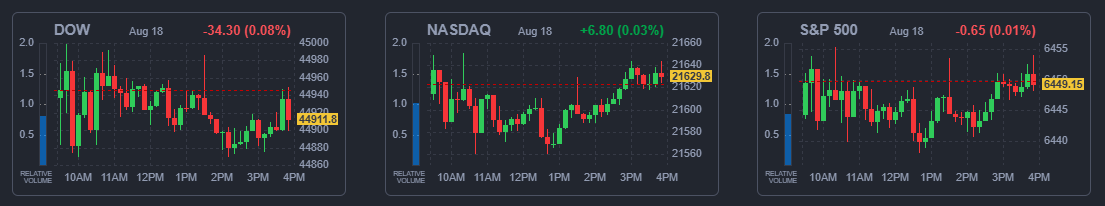 18일(현지시간) 뉴욕증권거래소(NYSE)에서 다우존스30산업평균지수는 전장보다 34.3포인트(0.08%) 내린 4만4911.82에 거래를 마감했다. 스탠더드앤드푸어스(S&P)500지수는 전장보다 0.65포인트(0.01%) 밀린 6449.15, 나스닥종합지수는 6.80포인트(0.03%) 오른 2만1629.77에 장을 마쳤다.