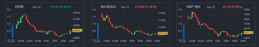 오는 21~23일 열리는 잭슨홀 미팅을 앞두고 투자자들의 경계 심리가 강해진 가운데 AI 산업을 둘러싼 거품론이 나오면서 기술주 투자심리가 위축됐다는 평가다.