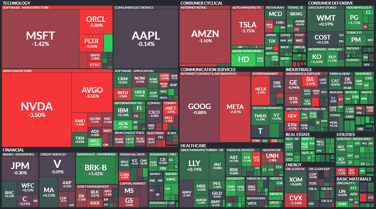 이날 뉴욕증권거래소에서 다우존스30산업평균지수는 전장보다 10.45포인트(0.02%) 오른 4만4922.27에 거래를 마쳤다. 반면 S&P500지수는 전장보다 37.78포인트(0.59%) 밀린 6411.37에, 나스닥종합지수는 314.82포인트(1.46%) 내린 2만1314.95에 마감했다.
