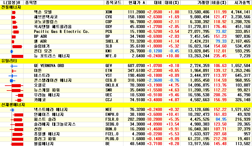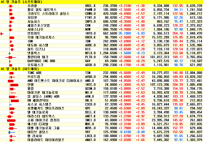 - 아날로그 반도체 업체 마이크로칩테크놀러지(MCHP), 전력반도체기업 온세미콘덕터(ON), AI 반도체 대장주 엔비디아(NVDA), 통신 및 네트워크용 반도체 강자 브로드컴(AVGO)