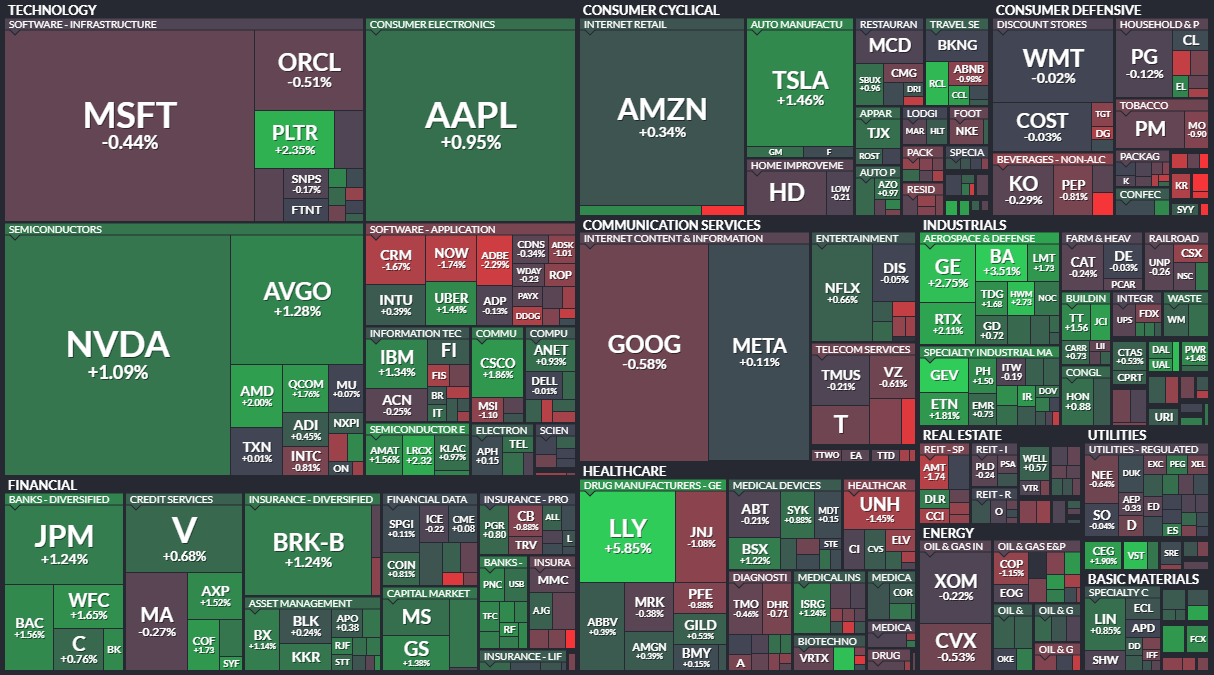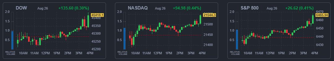 26일(현지시간) 뉴욕증권거래소(NYSE)에서 다우존스30산업평균지수는 전장보다 135.6포인트(0.3%) 오른 4만5418.07에 거래를 마감했다. 스탠더드앤드푸어스(S&P)500지수는 전장보다 26.62포인트(0.41%) 뛴 6465.95, 나스닥종합지수는 94.98포인트(0.44%) 상승한 2만1544.27에 장을 마쳤다.