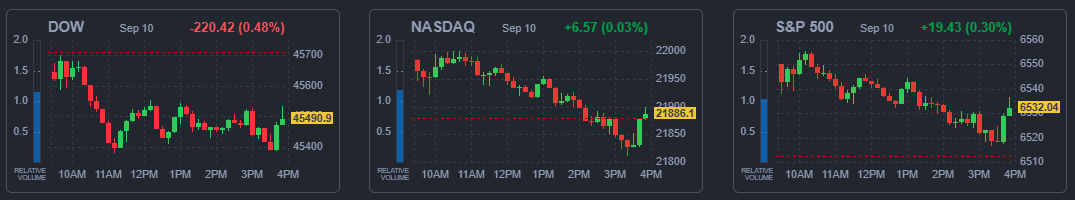 10일(현지시간) 뉴욕증권거래소에서 다우존스30산업평균지수는 전 거래일보다 220.42포인트(0.48%) 하락한 4만5490.92에 장을 마감했다. 반면 스탠더드앤드푸어스(S&P)500 지수는 19.43포인트(0.30%) 오른 6532.04에, 나스닥종합지수는 6.57포인트(0.03%) 상승한 2만1886.06에 각각 거래를 마쳤다.