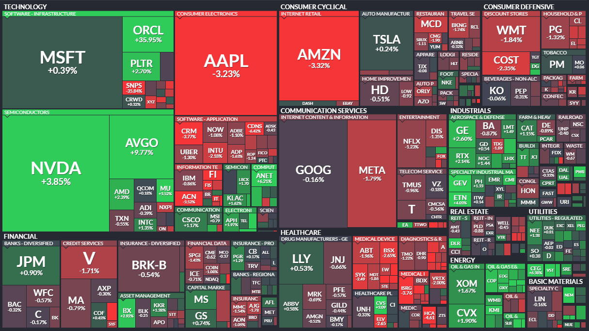 장 초반 증시 재료는 소프트웨어 대기업 오라클의 실적 발표였다. 오라클은 수주 잔고가 4550억달러에 달해 전년 동기 대비 359% 급증했다고 밝혔다. 시장은 두 배 수준 증가를 예상했으나 실제 수치는 이를 훨씬 뛰어넘었다. 회사는 2030 회계연도 클라우드 인프라 매출이 1440억달러에 이를 것으로 전망했다. 이는 2025 회계연도의 103억달러 대비 10배 수준이다.