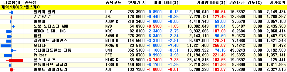 - 노보노디스크의 후보물질이 체중감량 효과에서 앞서는 것으로 알려진 점도 투자심리를 위축시키고 있다.