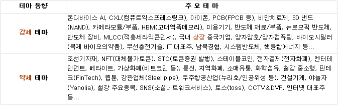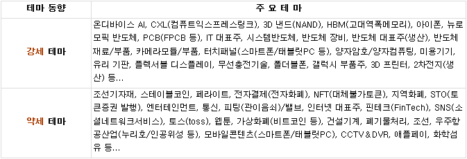▶ 자율주행차 : 하이비젼시스템, 스마트레이더시스템, 옵트론텍, 팅크웨어 등 자율주행차 테마가 상승.