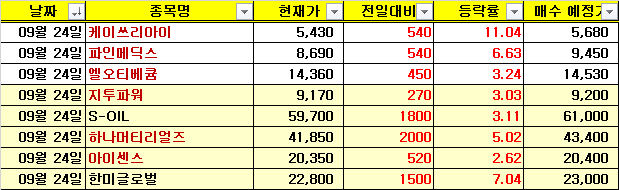 25/09/24 [한국] 뉴스 및 특징주