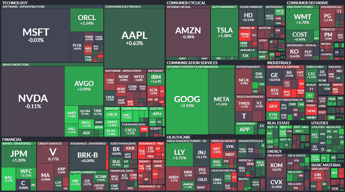 대형 은행이 호실적을 발표하고 금리 인하 기대가 지속됨에 따라 미국증시는 다우를 제외하고 일제히 상승했다.