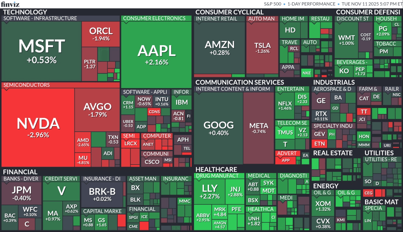 AI 관련주의 고평가 부담이 커지면서 기술주에서 헬스케어주 등으로의 순환매가 두드러졌다.