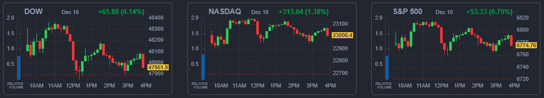 주요 주가지수는 11월 CPI가 예상치를 밑돌며 꺾였다는 소식에 급반등했다.