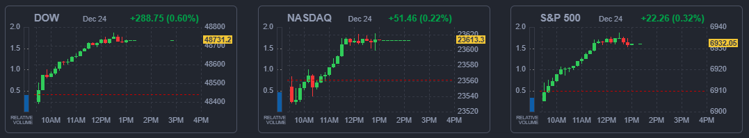 한편 뉴욕증권거래소는 크리스마스이브를 맞아 미 동부시간 기준 오후 1시(한국 시간 25일 새벽 3시)에 조기 폐장했으며 크리스마스 당일인 25일에는 휴장한다.