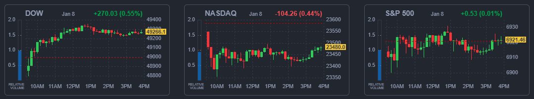 미국 뉴욕 증시의 3대 지수가 8일(현지시간) 혼조세로 마감했다. 인공지능(AI) 관련주를 중심으로 차익실현 매물이 출회된 가운데 에너지·소비재·소형주로 자금이 이동하는 순환매 흐름이 나타났다. 국제유가는 3% 넘게 급등했다. 투자자들의 시선은 이번 주 마지막 주요 경제 지표인 하루 뒤 발표될 12월 고용 보고서에 쏠리고 있다.