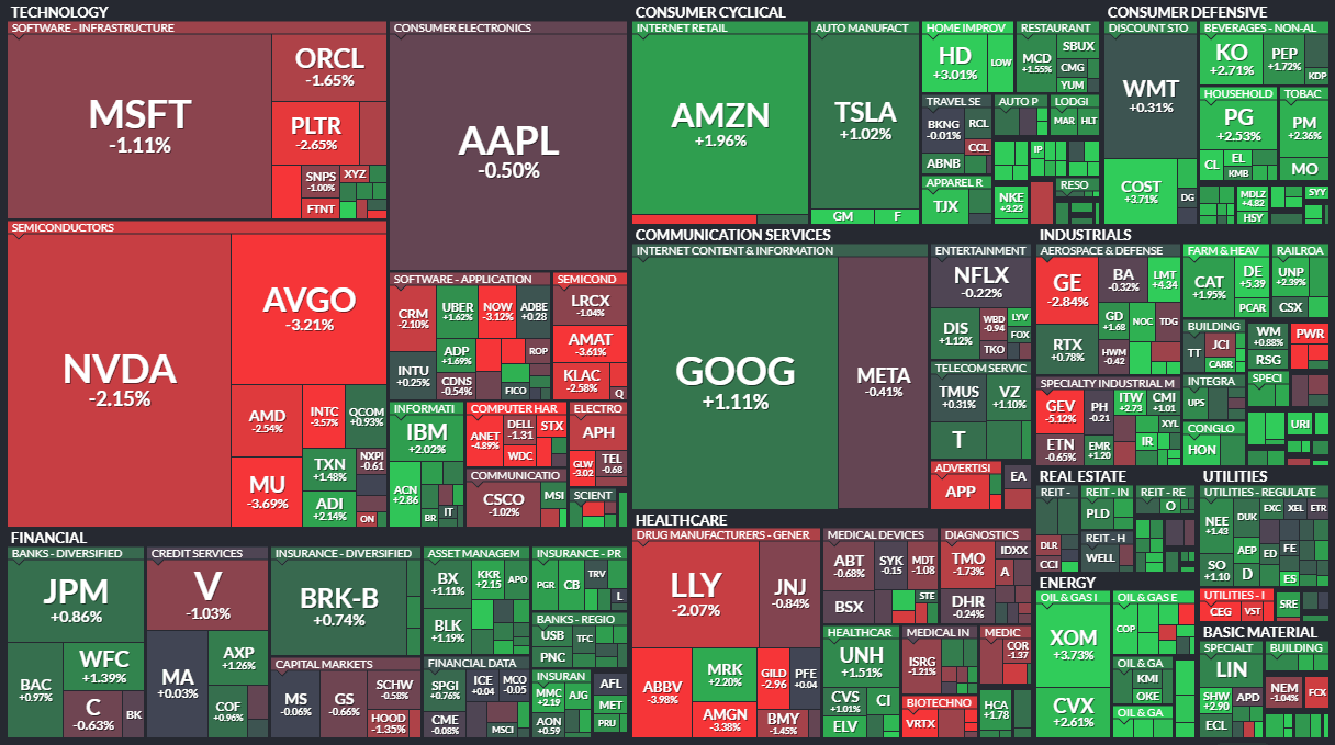 이날 뉴욕 주식시장에서 블루칩 중심의 다우존스30산업평균지수는 전 거래일보다 270.03포인트(0.55%) 상승한 4만9266.11에 장을 마쳤다. 대형주 중심의 S&P500지수는 0.53포인트(0.01%) 오른 6921.46, 기술주 중심의 나스닥지수는 104.259포인트(0.44%) 내린 2만3480.016에 거래를 마감했다.