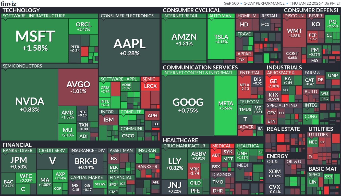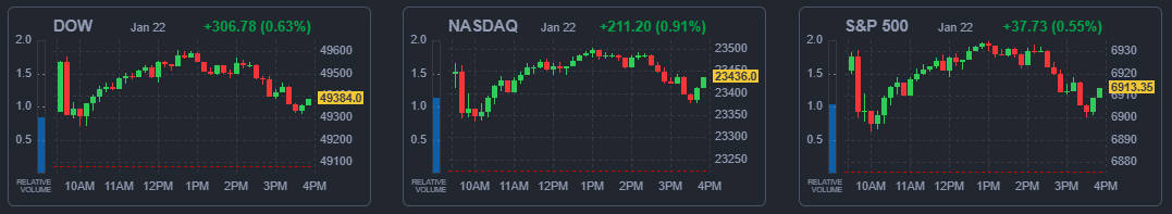 그린란드를 둘러싼 지정학적 긴장이 완화되고 견조한 경제지표가 나오면서 뉴욕증시가 이틀째 상승 랠리를 이어갔다.