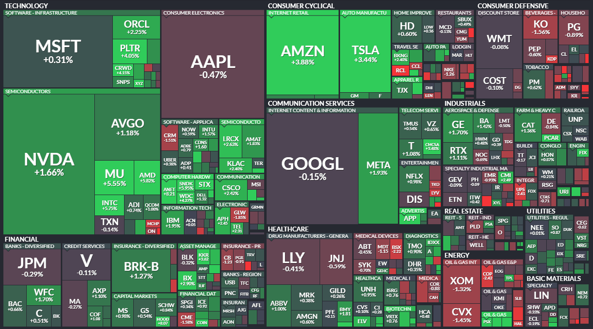이날 뉴욕증권거래소(NYSE)에서 다우존스30 산업평균지수는 전장보다 238.14포인트(0.49%) 오른 4만8739.41에 거래를 마쳤다. 스탠더드앤드푸어스(S&P) 500 지수는 전장보다 52.87포인트(0.78%) 상승한 6869.50에, 기술주 중심의 나스닥 종합지수는 전장보다 290.79포인트(1.29%) 오른 2만2807.48에 각각 마감했다.