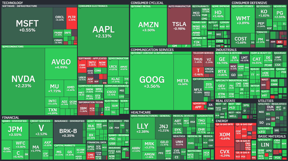 스탠더드앤푸어스(S&P) 500 지수는 165.96포인트(2.51%) 오른 6782.81에, 기술주 중심의 나스닥 종합지수는 617.15포인트(2.80%) 오른 2만2634.99에 각각 장을 마감했다.
