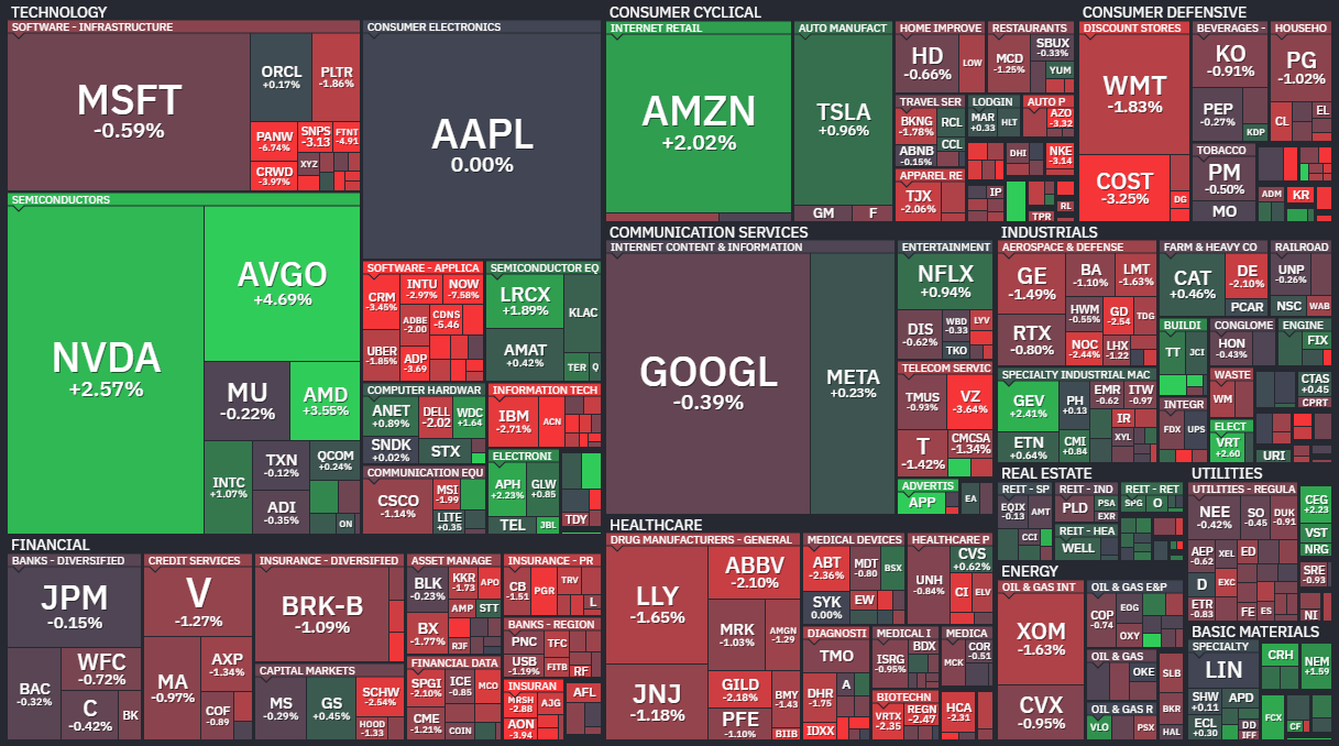 이날 뉴욕증시에서 다우존스30 산업평균지수는 전장보다 269.23포인트(0.56%) 하락한 47,916.57에 거래를 마쳤다. 반면 스탠더드앤드푸어스(S&P) 500지수는 7.77포인트(0.11%) 내린 6,816.89로 약보합 마감했고, 나스닥 종합지수는 80.48포인트(0.35%) 오른 22,902.89로 상승 마감했다.
